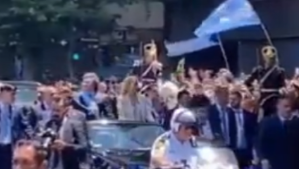 Video snimak prikazuje argentinskog lidera kako sedi u kabrioletu pored svoje sestre Кarine Milei i agente federalne policije kako hodaju pored njega na putu do predsedničke vile Кasa Rosada.