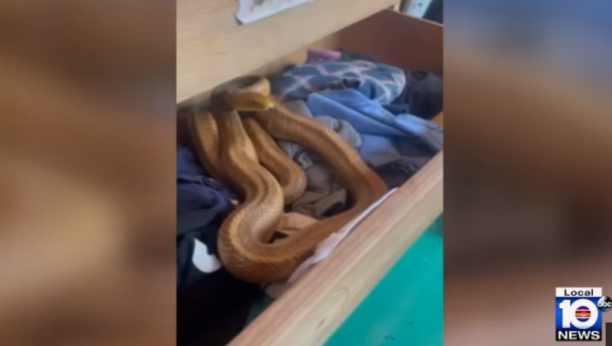 Porodica je rekla da su bili na svom brodu u blizini plaže Rivijera Bič kada su otvorili fioku za čarape i pronašli žutu istočnu zmiju pacova koja im je gledala.