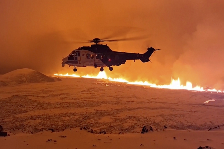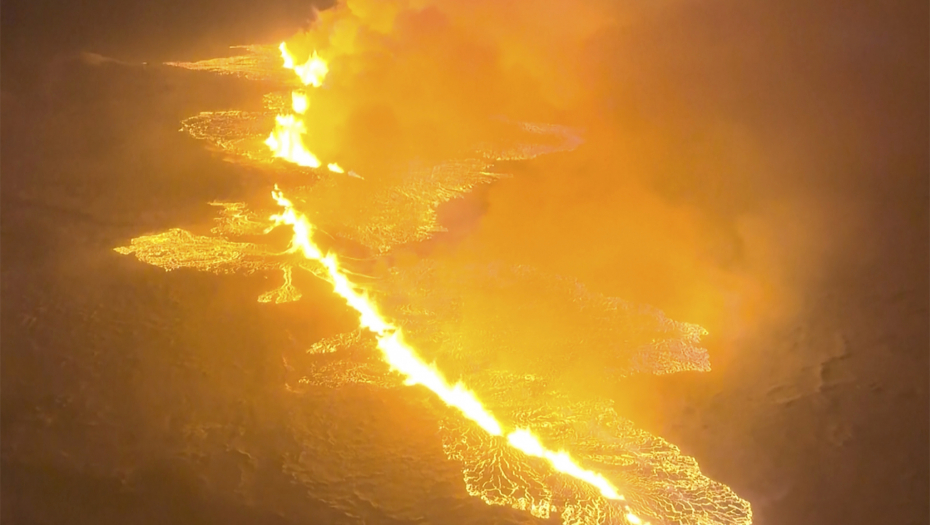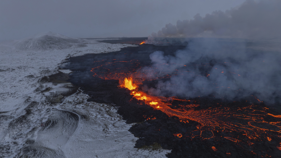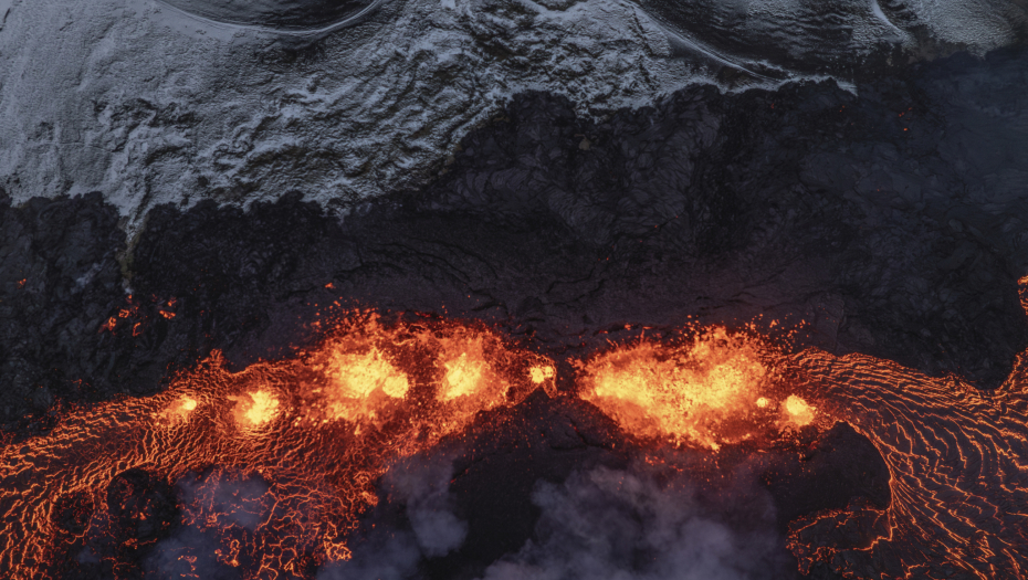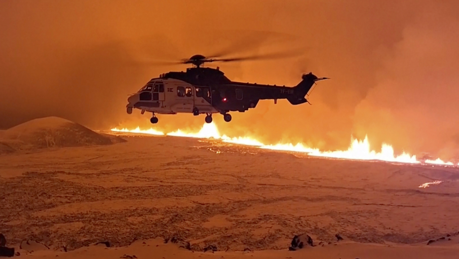 Islandska meteorološka služba objavila je ovaj spektakularan snimak erupcije iz vazduha, nastao iz helikoptera obalske straže.