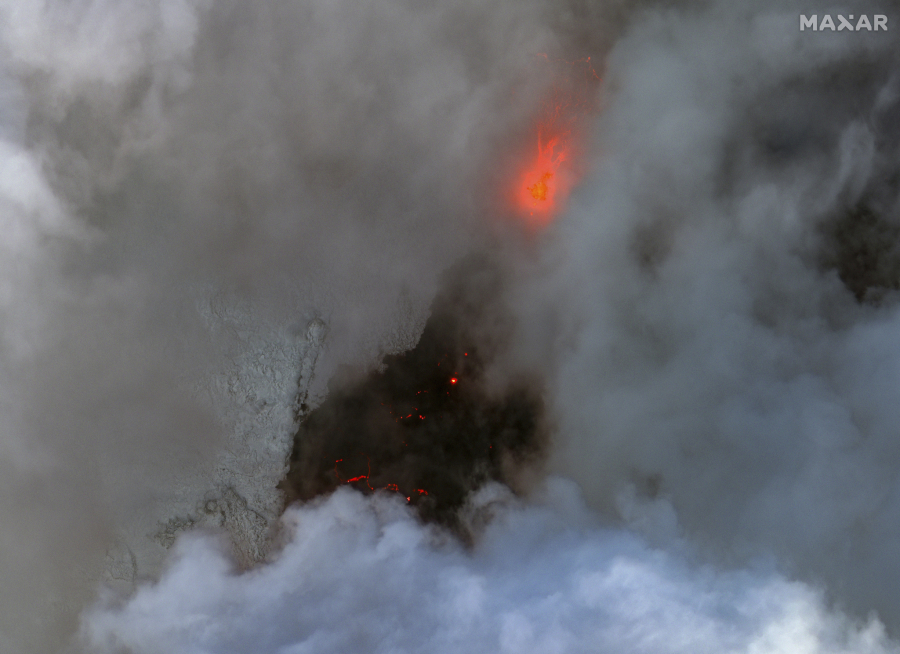 U međuvremenu Maxar je objavio fotografije erupcije sa satelita.