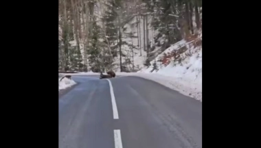 UZNEMIRUJUĆI VIDEO! Svi su mislili da je u dubokom SNU! Medved vuče svoj plen preko magistrale
