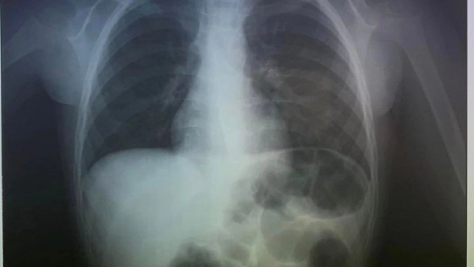 Doktori su prvo uradili rendgen, kako bi videli gde je završio novčić i videli da se zaglavio u grlu.