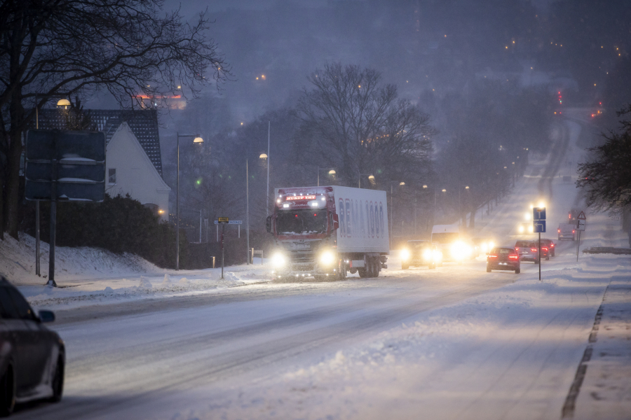 Međutim, hladnoća i sneg stvorili su velike probleme, a stotine automobila zaglavljeno je u snegu na putu E22 između Horbija i Kristijanstada.