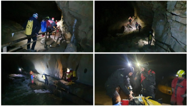 Spasavanje je olakšao pad nivoa vode koji je zbog velikih padavina porastao u subotu i onemogućio da tročlana porodica i dva vodiča napuste pećinu.