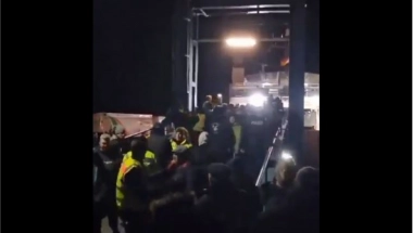 Policija iz Flensburga je u petak ujutru saopštila da je "iz redova demonstranata između 25 i 30 ljudi pokušalo da se popne na trajekt, ali su ih u tome zaustavili policajci koji su tu bili, delom i upotrebom biber-spreja", ne navodeći da li je bilo povređenih.