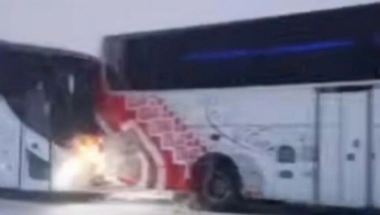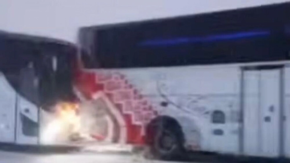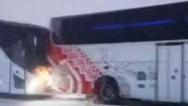 Pojavio se jezivi snimak momenta kada se autobus zakucao u drugi autobus a od siline udara gurao ga je vdesetak metara.
