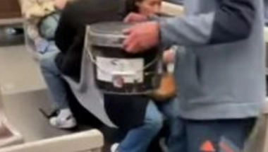 Drugi vide pokazuje kako ulazi u voz sa kantom i prevrće je preko nasumičnog stranca pre nego što pobegne. Uhapšen je kasnije pod optužbama za napad i nanošenje teških povreda putnicima, kao i za oštećenje imovine prevoznika.