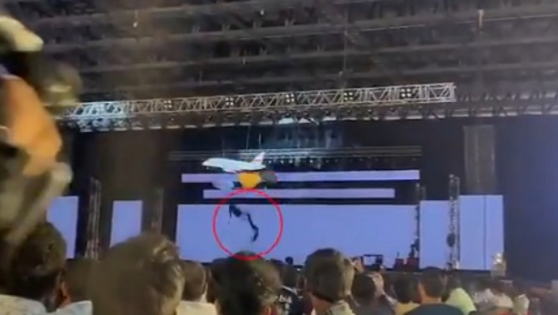 Kamera je zabeležila jezivi trenutak kad su Sandžaj Šah i Višvanatan Radžu Datla, izvršni direktor i predsednik tehnološke kompanije Vistek, ispali iz kaveza kojim su se spuštali na binu.