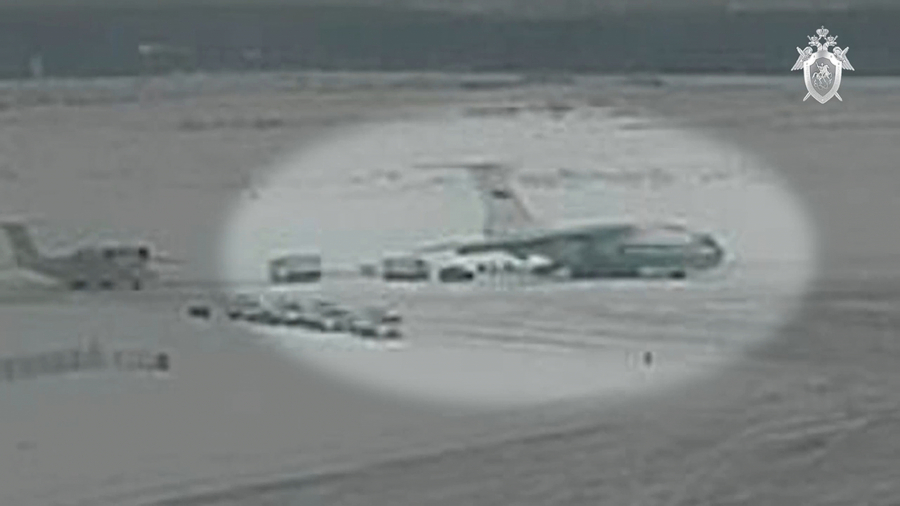 Na snimku, koji je objavljen na Telegram kanalu Istražnog komiteta, vidi se konvoj od šest autobusa koji prevoze ukrajinske ratne zarobljenike za potencijalnu razmenu, kako se približava avionu.