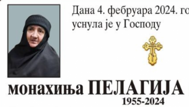 UMRLA MONAHINJA PELAGIJA Biće sahranjena na monaškom groblju