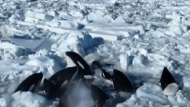 Na video-snimku koji je objavio portal HNK vidi se kako najmanje 10 kitova viri iz malog procepa u led na oko kilometar udaljenost od obale od grada Rausu, poznatom po velikom broju raznih divljih životinja koje tu žive.