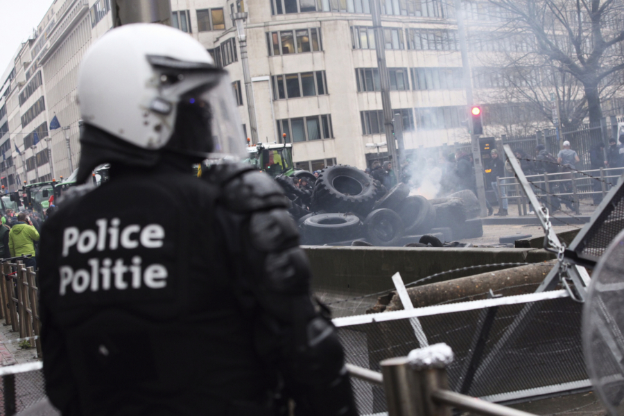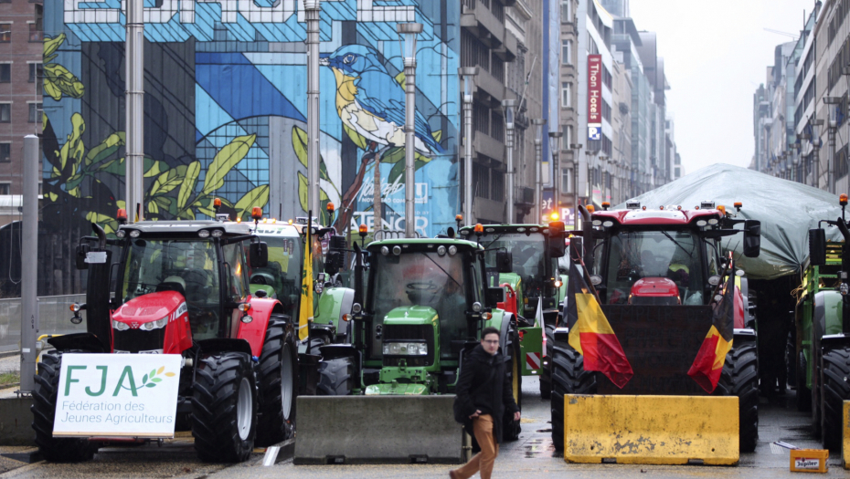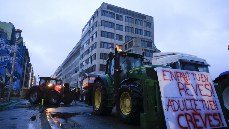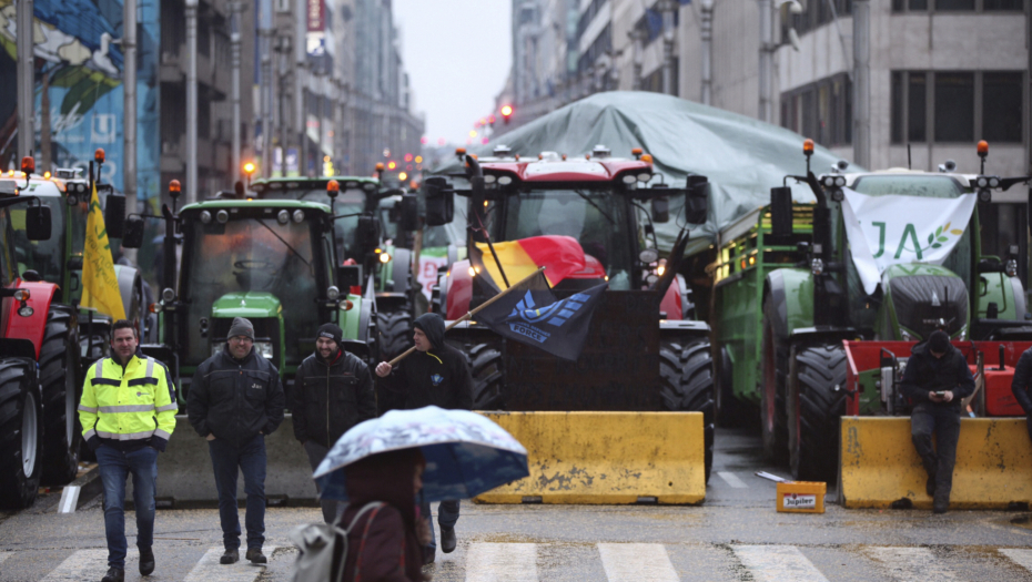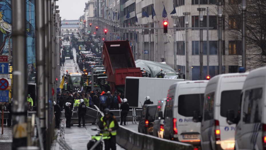 Agencija AP prenosi da su poljoprivrednici napravili betonske barijere i da su bodljikavim žicama okružili sedište Evropske unije, da su traktori okićeni zastavama i sa transparentima, kao i da neki od njih bacaju gume ispred ulaza u zgradu EU.