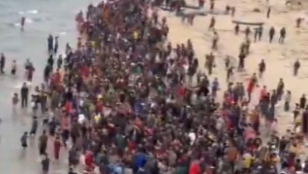 POMOĆ ZA GAZU BAČENA U MORE Ljudi trče duž obale, haos u Pojasu Gaze (VIDEO)
