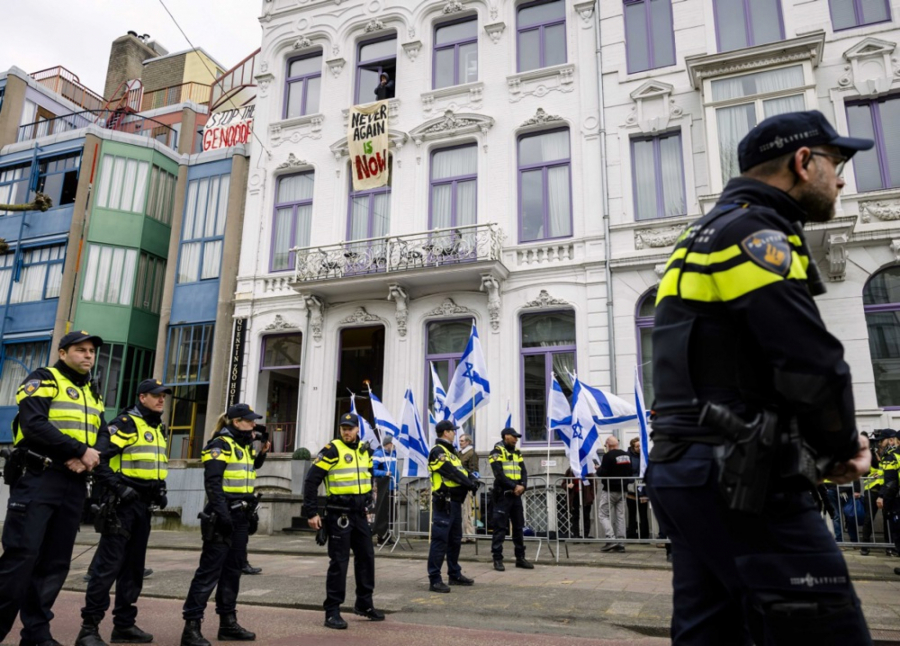 Demonstranti su uzvikivali "Prekid vatre odmah", držali transparente "Jevreji protiv genocida", "Amsterdam kaže ne genocidu" i nosili su palestinske zastave.