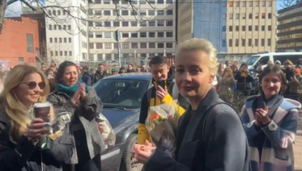Portparolka Navaljnog Kira Jarmiš, objavila je video na kojima se vidi kako su građani u Nemačkoj dočekali Juliju Navaljni.