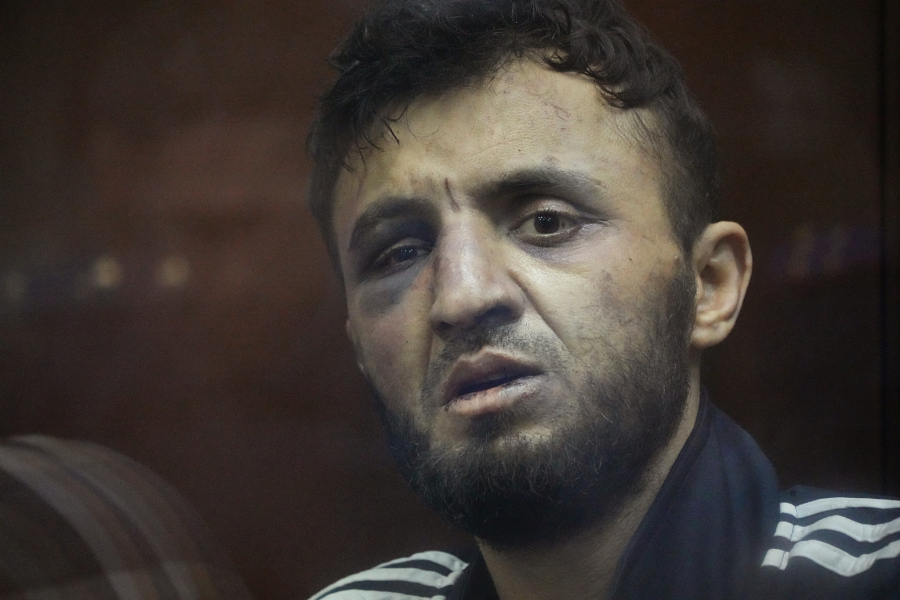 Četvorica muškaraca optužena za izvođenje najsmrtonosnijeg terorističkog napada u Rusiji u poslednjih nekoliko decenija pojavila su se pred moskovskim sudom u nedelju uveče previjeni i pretučeni. Jedan je ušao sa delimično odsečenim uvom. Drugi je bio u narandžastim invalidskim kolicima, naduvenog levog oka, otvorene bolničke haljine i katetera u krilu.
