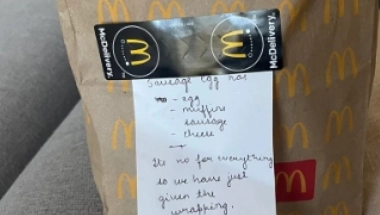 "Dobila je prazan omot i ceduljicu sa objašnjenjem: "Nismo vam stavili jaje, kobasicu, kao ni mafin jer ih niste izabrali. Zato evo omot."