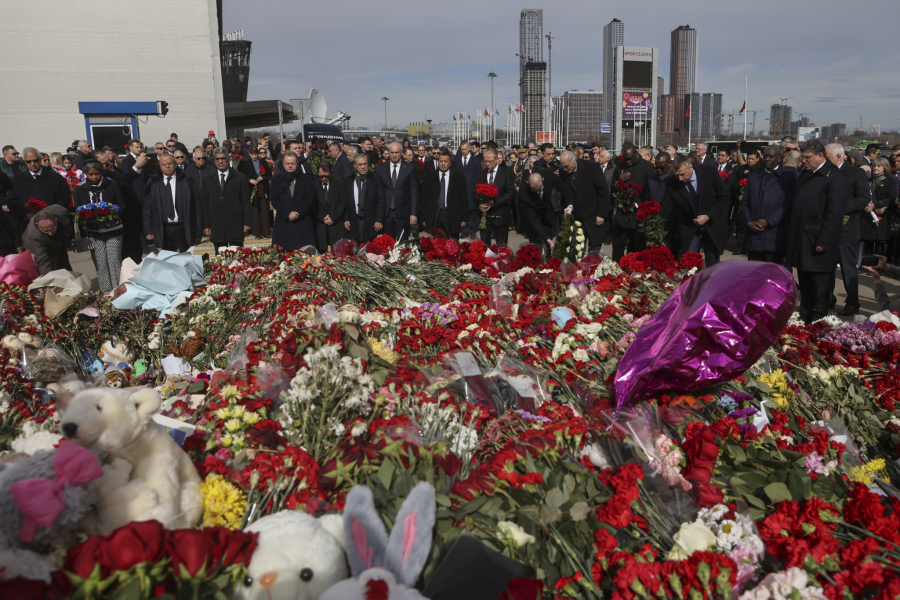 - Danas je održana ceremonija polaganja cveća na spontano spomen obeležje u kompleksu Krokus siti hola. U memorijalnoj manifestaciji učestvovali su šefovi i zaposleni u više od 130 diplomatskih misija, odnosno više od 250 ljudi - saopštilo je Odeljenje za državni protokol Ministarstva spoljnih poslova Rusije.