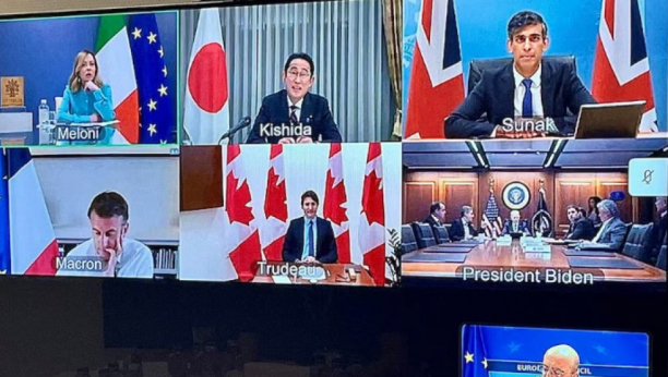 U sastanak su se putem video poziva, osim Šarla Mišela i Džoa Bajdena, uključili i italijanska premijerka Đorđa Meloni, britanski premijer Riši Sunak, predsednik Francuske Emanuel Makron, kanadski premijer Džastin Trudo i japanski premijer Fumio Kišida.