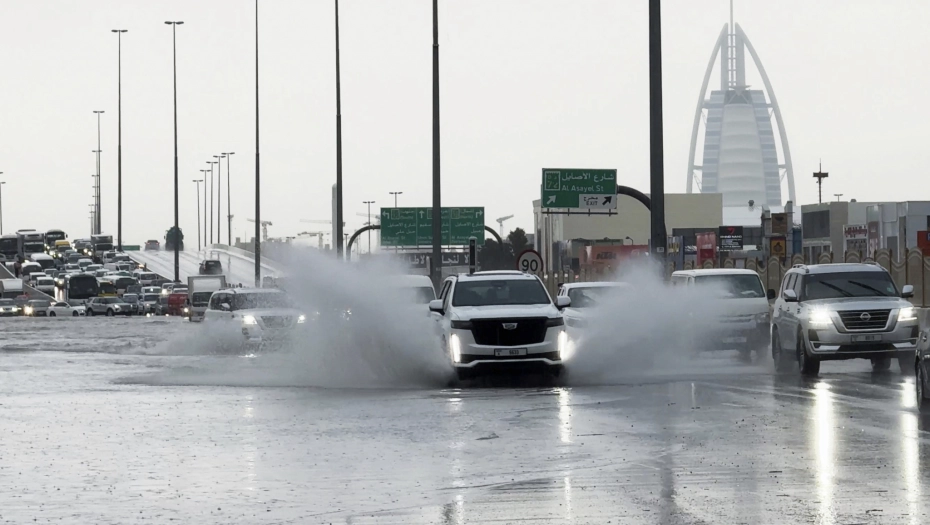 Kiša je počela da pada tokom noći, ostavljajući za sobom ogromna jezera na ulicama dok su jaki vetrovi poremetili letove na Međunarodnom aerodromu u Dubaiju.