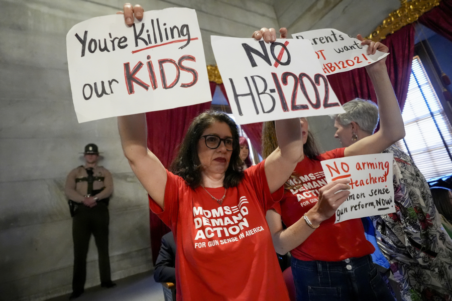 Otprilike polovina američkih saveznih država dozvoljava nastavnicima ili drugim zaposlenima da u pojedinim situacijama, sa dozvolom za skriveno nošenje, nose oružje u školama, prema podacima Pravnog centra Gifords, grupi koja zastupa kontrolu oružja.