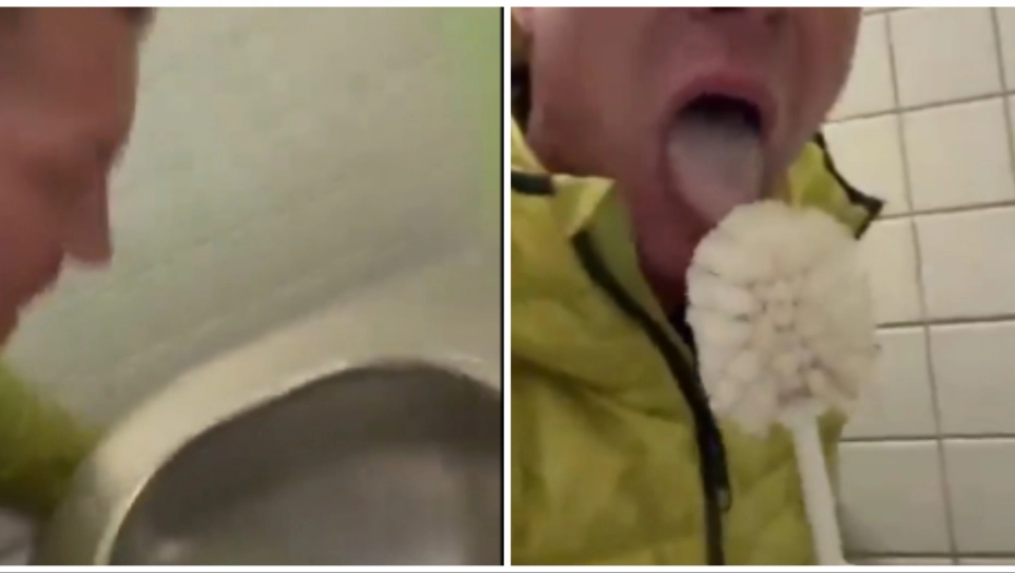 Zatim ode do kockastog toaleta i uradi istu stvar, a zatum uradi nešto od čega će većini ljudi pozliti - liže jasno korišćenu toaletnu četku.