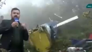 Iranska državna televizija objavila je snimke na kojima se vidi kako spasilačke ekipe na nosilima nose telo prekriveno ćebetom, a sada su objavili snimak na kojem novinar iranske državne agencije stoji kraj olupine.