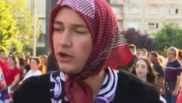 Maturant je rešio da se za ovaj poseban događaj obuče iz bakinog ormana, a sve je začinio maramom koju je stavio na glavu.