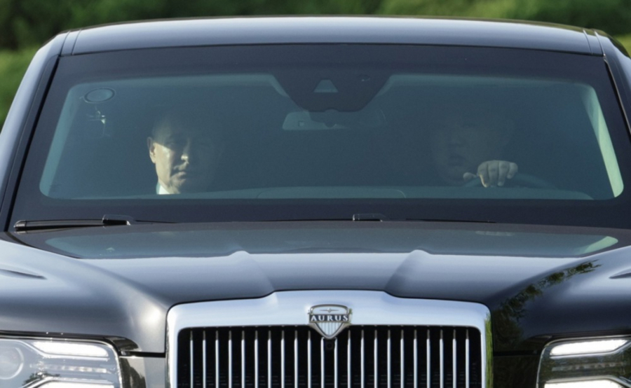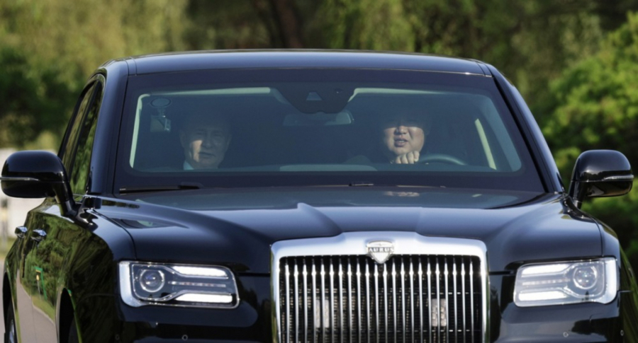 Na snimku koji je objavila ruska državna televizija vidi se kako Putin seda za volan crne blindirane limuzine, koja je i njegov službeni predsednički automobil u Rusiji, a Kim sedi na suvozačevom mestu, preneo je Rojters.