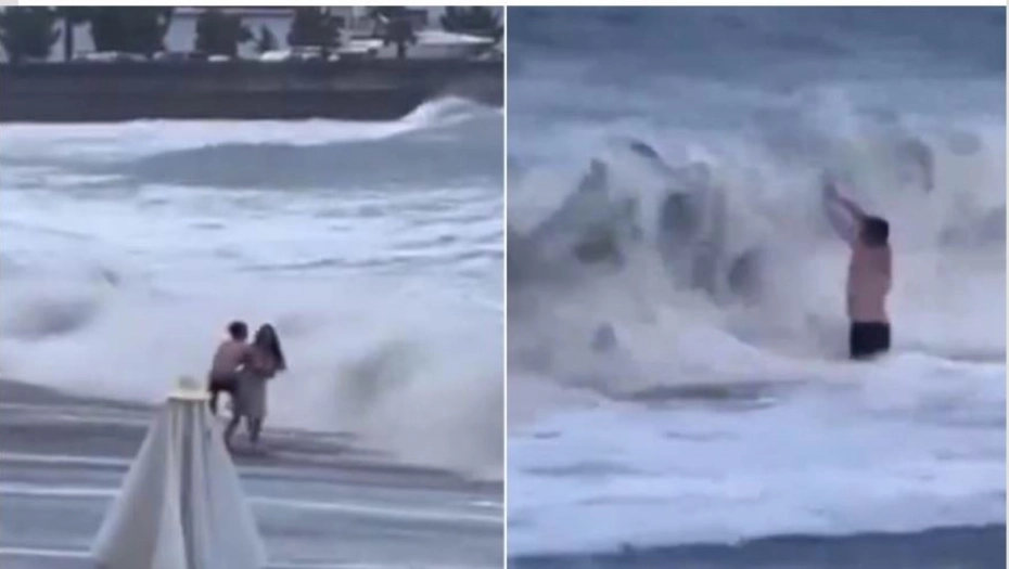 Čini se da par nije video velike talase koji su zapljuskivali obalu, pa ih je jedan takav poklopio. Muškarac je devojku gurnuo prema obali, ali ju je talas ipak odneo.