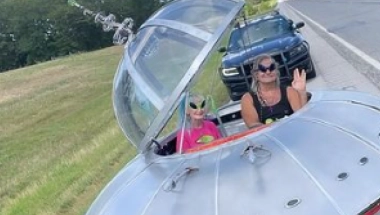 Dvoje putnika u neobičnom vozilu objasnili su da su bili na putu na godišnji NLO festival u Rozvelu, Novi Meksiko.