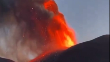 Snimke pokazuju lavu i krhotine koje su zatim polako tekle niz planinu, a u neposrednoj blizini bili su i istraživači koji su posmatrali erupciju.