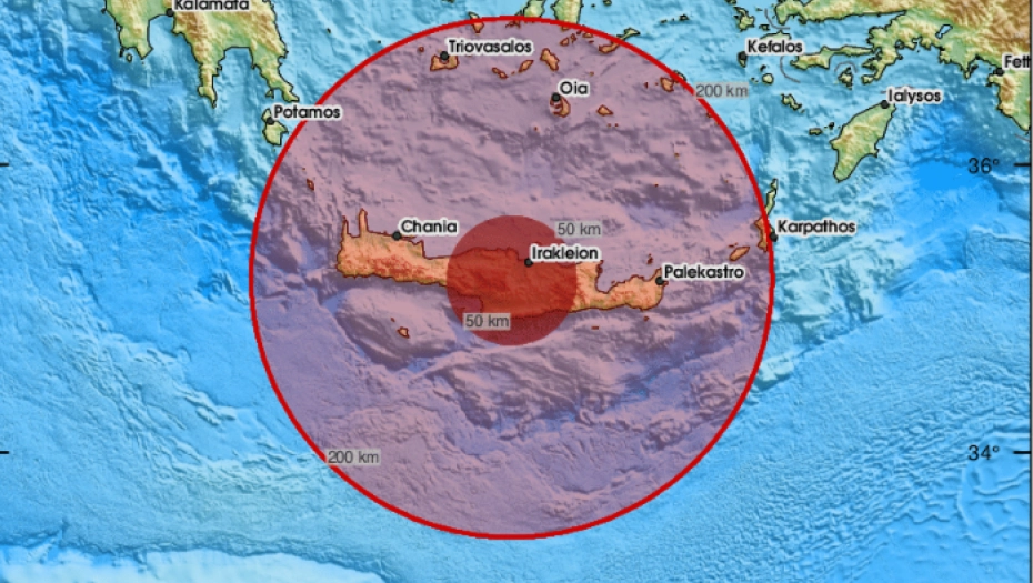 Epicentar zemljotresa bio je na 64 kilometara jugoistočno od najvećeg grada na Kritu, Irakliona.