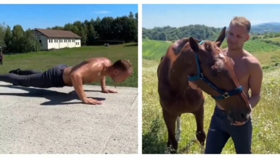 Naime, on se skinuo, pokazao mišiće, radio sklekove i trbušnjake u pantalonama i cipelama, a kasnije i jahao konja.