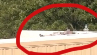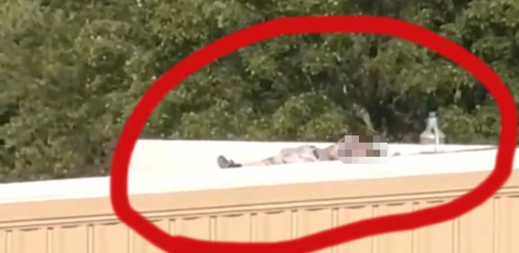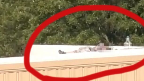 Na videu na kom se vidi muškarac kako leži na krovu čuje se žena koja ga zove po prezimenu, pita ga šta to radi i govori mu da siđe sa krova.