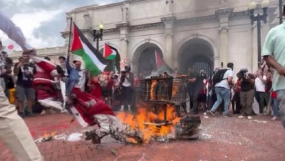Anti-izraelski demonstranti srušili su američku zastavu koja se vijorila ispred Junion Stejšna u Vašingtonu, a zatim je umesto nje postavila palestinsku zastavu dok su palestinske zvezde i pruge na zemlji.
