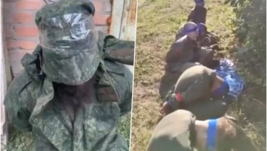 Na jednom snimku se navodno vidi vezani pripadnik specijalnog čečenskog bataljona "Ahmat" koji je nakon upada ukrajinskih trupa na zapad Rusije poslat da stabilizuje situaciju.