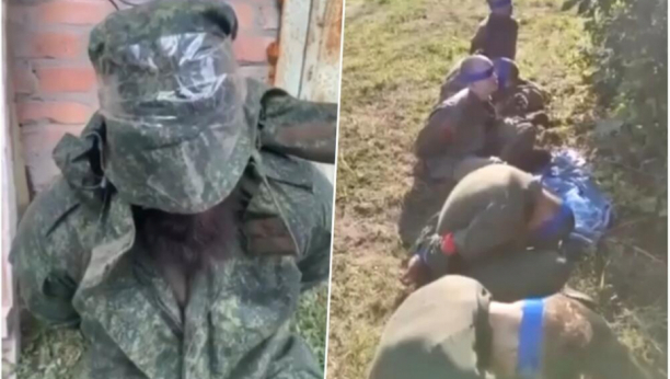 Na drugom snimku vidi se grupa mladih ruskih vojnika sa povezima preko očiju koji su takođe zarobljeni tokom iznenadne ofanzive ukrajinskih trupa na Kursku oblast.