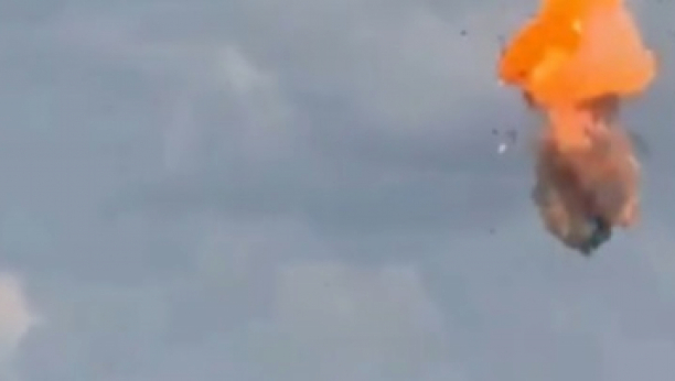 Istovremeno, video je uhvatio trenutak kada je ruska vojska oborila letelicu: na nebu se dogodila eksplozija, leteći objekat se razbio u male komadiće.