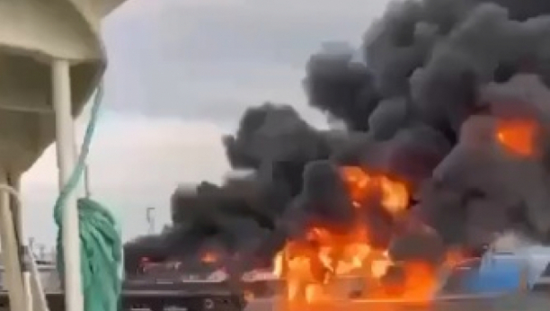 Na snimku se vidi gust crni stub dima koji se diže u oblasti luke, nakon čega sledi eksplozija, praćena jakim bljeskom.