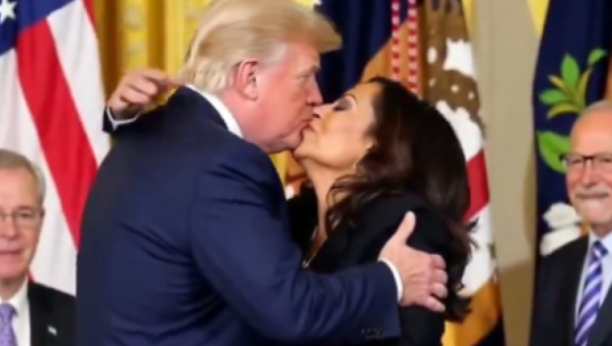 Video urađen pomoću veštačke inteligencije ne zaustavlja se samo na romantičnoj šetnji uz zalazak sunca. Donald Tramp i Kamala Haris se ljube i to ni manje ni više nego tokom predsedničke kampanje, na nekoj konvenciji, sigurno zajedničkoj.. Ili možda čak i na inauguraciji, ali teško je iz videa zaključiti kome je AI dala prednost, ko je od njih dvoje na čelu SAD.