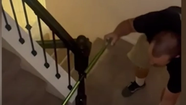 Džesup je na Fejsbuk stranici podelio video na kojem se vidi kako koristi alatku za hvatanje da ukloni zvečarku sa stepenica u kući.