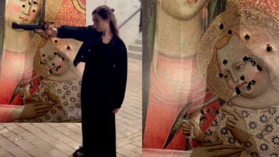 Ameti je kao metu za pucački trening iskoristila katalog aukcijske kuće Koller, i to prikaz Marije s malim Isusom u naručju.