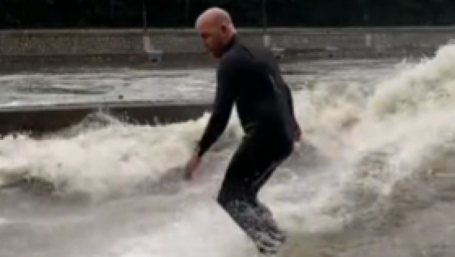 Društvenim mrežama se širi i snimak surfera koji je talase poplavljene reke ocenio kao pogodnu priliku za trening.