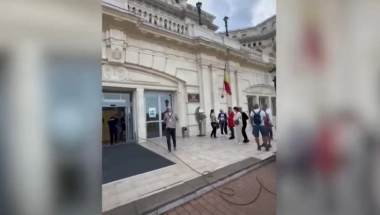 Šokantan incident desio se danas u parlamentu Rumunije. Muškarac je ušao u zgradu i navodno polio ljude benzinom u holu. Trenutak kada je zapalio vatru u prodavnici suvenira snimile su kamere. Počinitelj je odmah pobegao i sada ga traži policija.