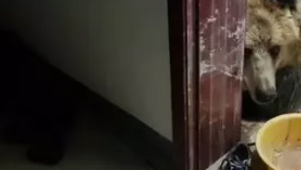 Čovek se povukao iza vrata i tiho pokušao da ih zatvori dok je u isto vreme pokušavao da otera medveda.