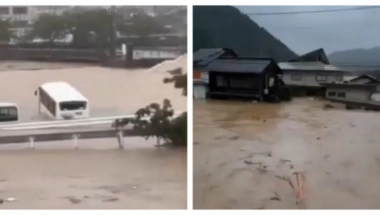 Japanska meteorološka agencija je saopštila da topli, vlažni vazduh izaziva jake padavine sa grmljavinom u zapadnom Japanu, delimično zbog tajfuna Kong-rej koji je u međuvremenu opao na intenzitet tropske oluje, prenosi portal CNA.