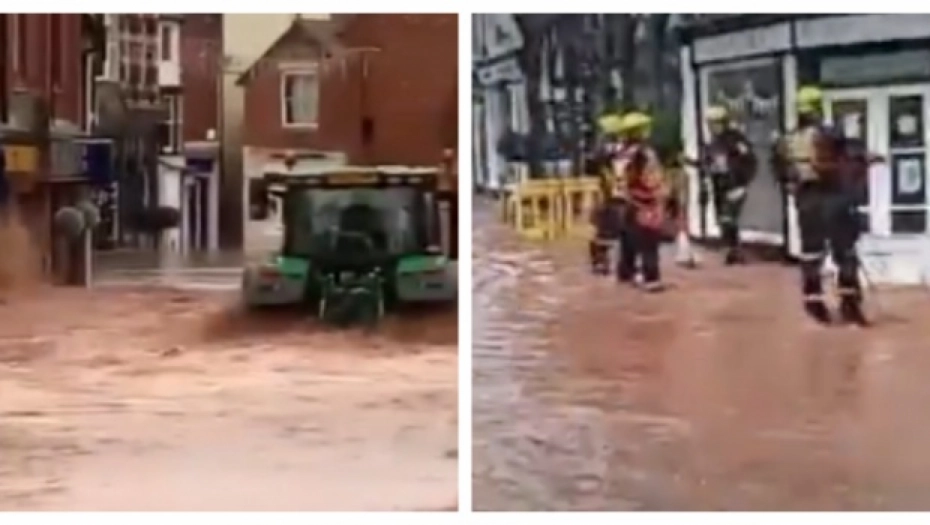 Centar Tenberi Velsa je potopljen nakon što se potok prelio i izazvao haos, piše “Dejli mejl”.