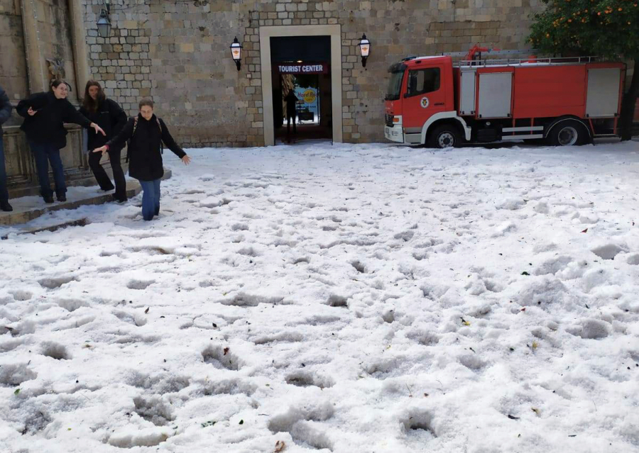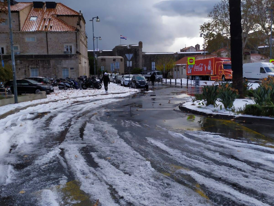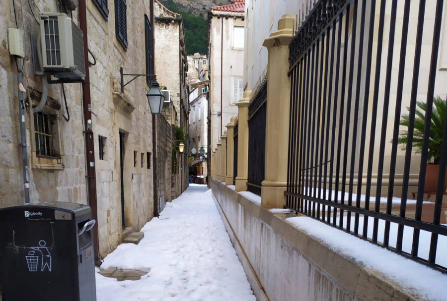 Od padavina se na Stradunu mestimično formirao led debljine i do 30 centimetra, dok se na moru pojavila pijavica.