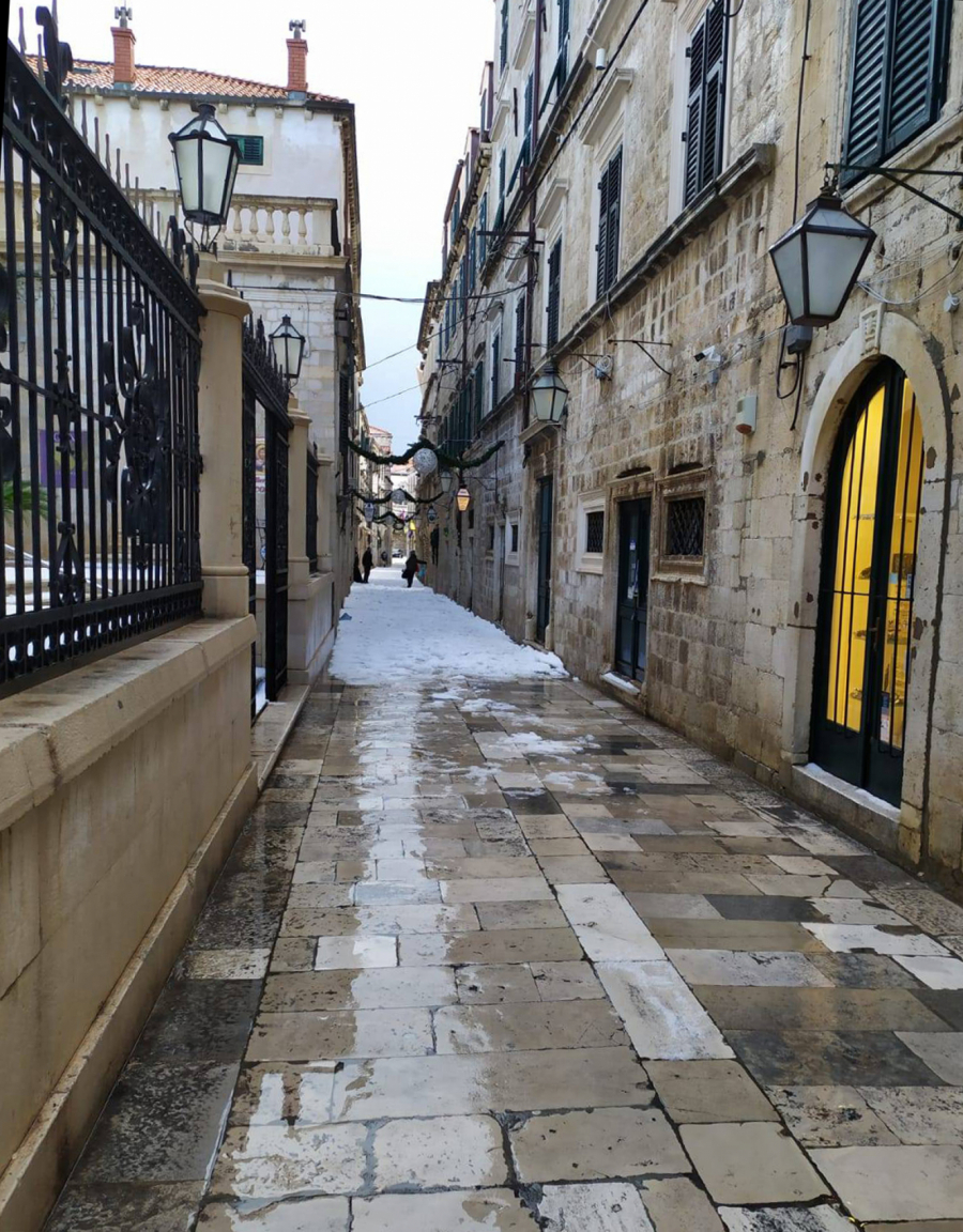 "Ljudi se bukvalno klizaju ne bi li prošli Stradunom. S obzirom na to da se sav led sliva niz oluke na ulicu, negde su nanosi visoki i do 30 centimetara. Ljudi pokušavaju da otkopaju svoje lokale, a pred gradom se na moru pojavila i pijavica", piše portal.